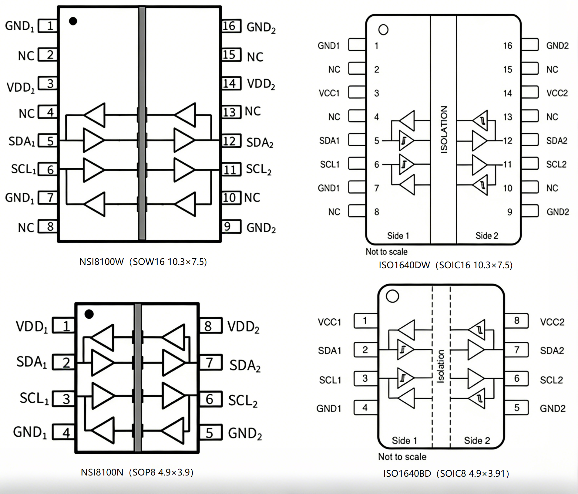 NSI8100与ISO1640均聚焦I2C总线的电气隔离要求,核心定位高度一致。