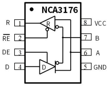 独立的使能控制:NCA3176提供独立的驱动器使能(DE)和接收器使能(/RE)引脚——可通过MCU GPIO直接控制,轻松实现“发送后立即切换接收”的半双工逻辑,比“DE/RE复用引脚”方案更灵活,方便设计半双工通信的控制逻辑。