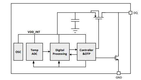 - 采用双引脚架构,DQ=电源+信号,GND=宽焊盘,无需重构电路,即可直接替代传统NTC热敏电阻;若需灵活部署,也可轻松转换成双线温度探针;