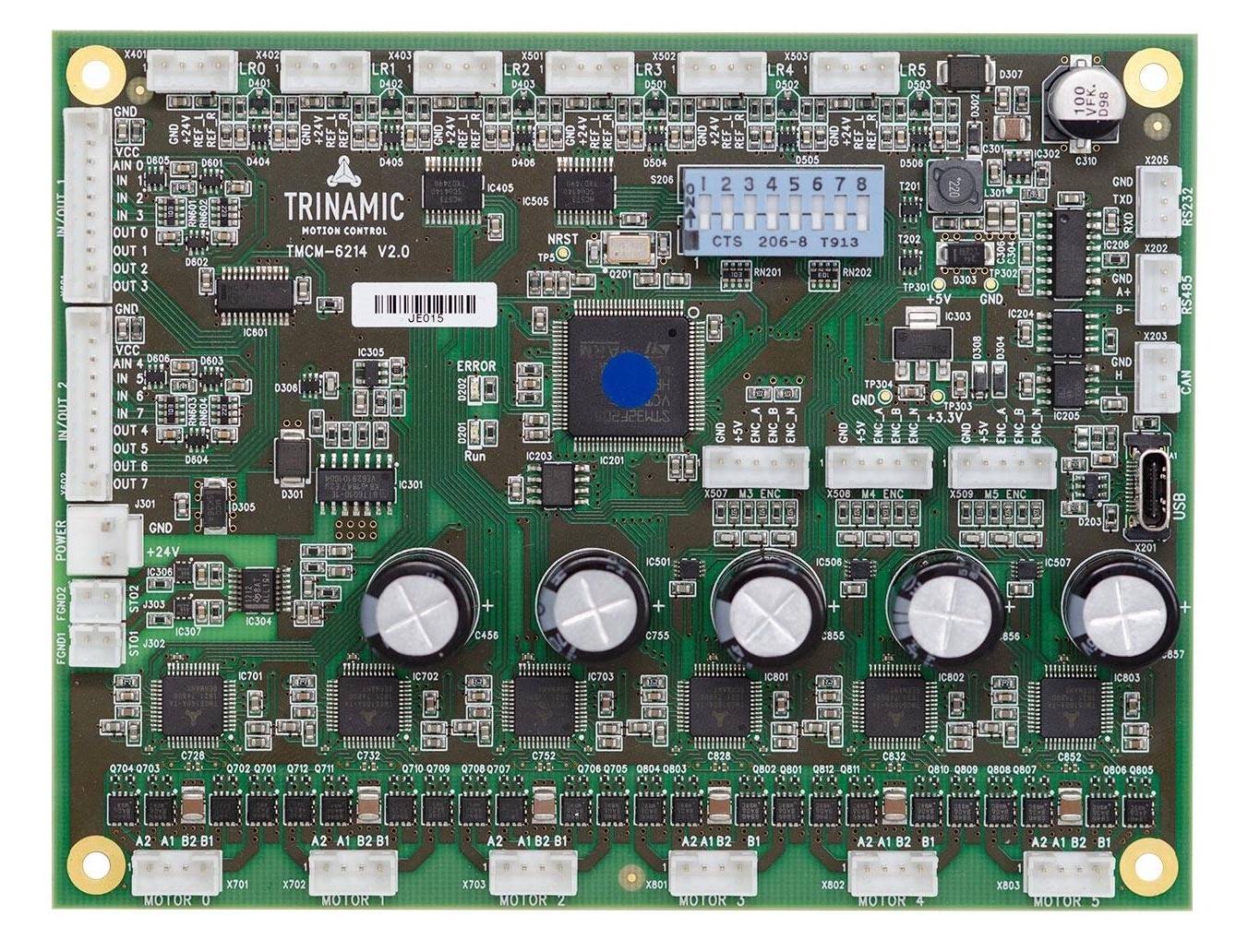 在现代工业自动化飞速发展的今天,精密控制运动已成为制造业、医疗设备、半导体生产和机器人技术等领域不可或缺的核心技术。随着应用场景的愈发复杂化,市场对多轴精密协同控制的需求持续攀升,传统单轴或低轴数控制器已难以满足高端设备的性能要求。而有这么一款六轴电机控制器/驱动板,凭借其高集成度和卓越的性能,成为解决多轴控制难题的理想方案。它就是由TRINAMIC运动控制公司推出的TMCM-6214六轴电机驱动器/控制板。